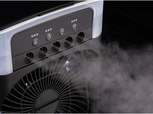 Ne vous laissez pas accabler par la chaleur : prenez plutôt ce mini ventilateur de table USB avec brumisateur. Ce ventilateur USB ne se contente pas de brasser l'air : il diffuse aussi une brume légère afin que vous puissiez vous rafraîchir efficacement. Vous pouvez même y ajouter de l'huile essentielle si vous le souhaitez.