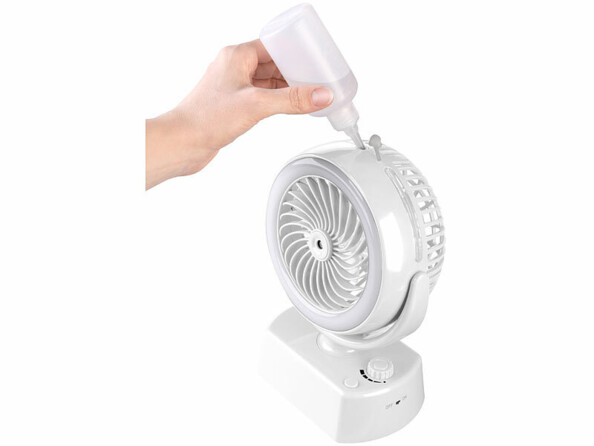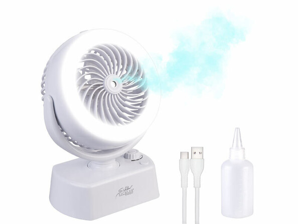 - Ventilateur de table rechargeable avec brumisateur et anneau LED de la marque Sichler Haushaltsgeräte