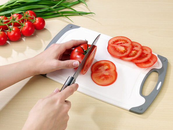 Pour trancher tomates, fruits, oignons ou herbes aromatiques : choisissez pour chaque aliment la planche à découper Rosenstein & Söhne de la taille la plus adaptée. Surtout, en réservant une planche pour les oignons, vous évitez d'en transférer dans la salade de fruits ! Avec une planche dédiée à chaque ingrédient, son goût n'est ainsi pas altéré.