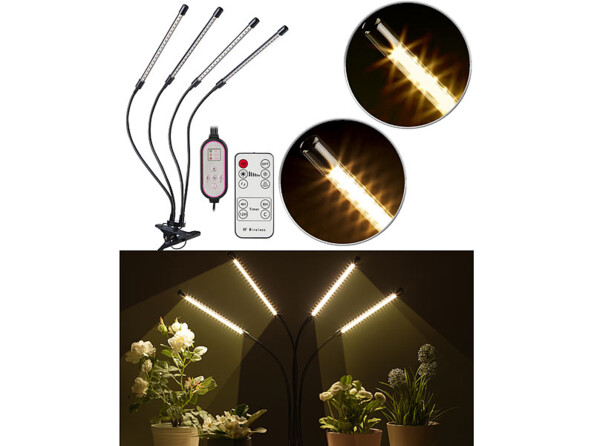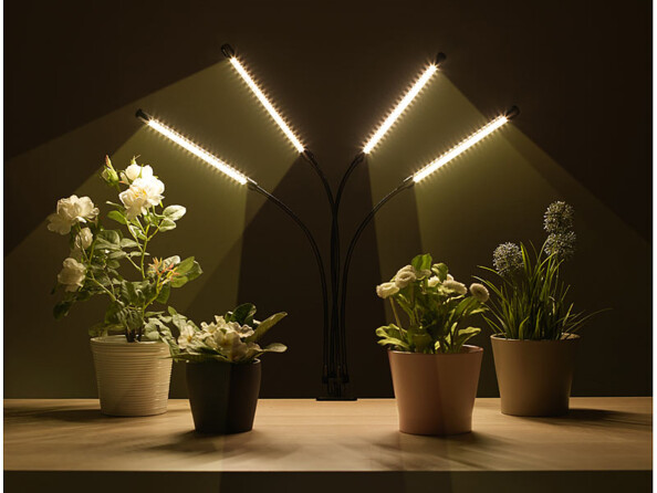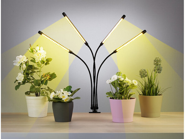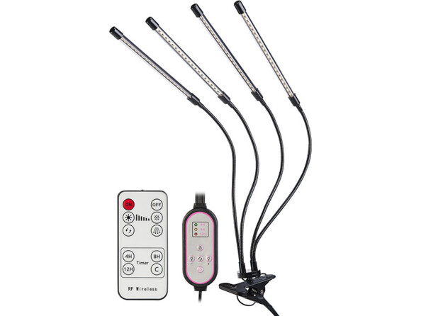 Facile à utiliser, la lampe horticole PL-360 s'installe en un rien de temps. Ses 4 têtes à col de cygne peuvent s'orienter sur 360° de manière flexible. Elles sont également contrôlables individuellement via la télécommande fournie.
