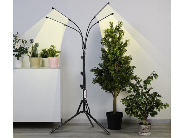 Lampe horticole LED avec 4 têtes à col de cygne et trépied