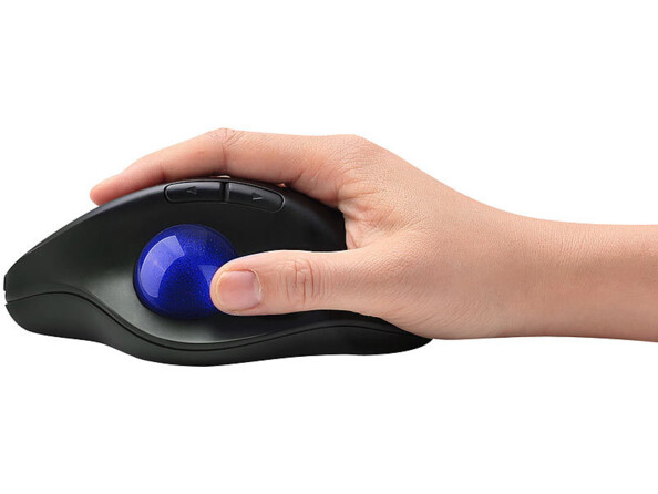 En effet, vous contrôlez le pointeur de la souris par trackball uniquement avec votre pouce et sans déplacer la souris.