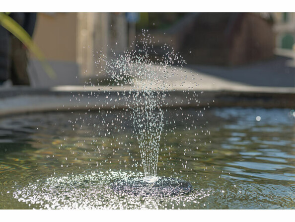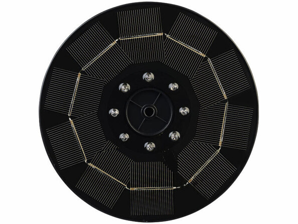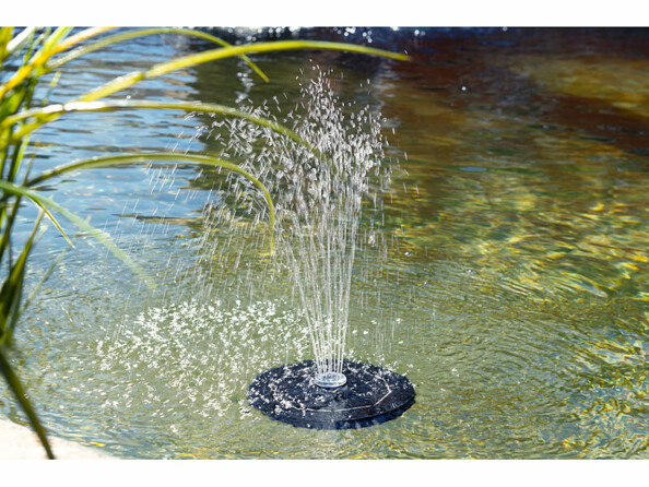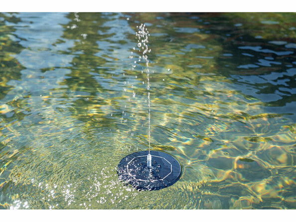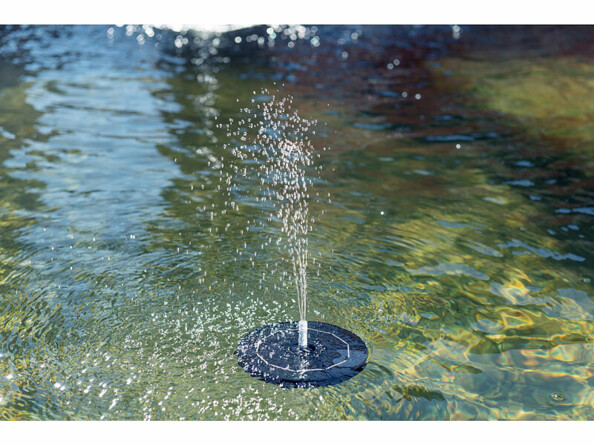 Grâce au panneau solaire intégré, vous n'avez même pas besoin de raccorder la fontaine décorative à une prise de courant de votre jardin. Il suffit simplement de poser la fontaine solaire sur la surface de l'eau et le soleil fait le reste ! Les cellules solaires rechargent en permanence la batterie intégrée avec l'énergie solaire en surplus. La fontaine dispose ainsi d'une réserve d'énergie suffisante pour fonctionner même en cas de faible luminosité et en cas d'obscurité. Elle peut continuer à barboter jusqu'à trois heures durant la nuit.