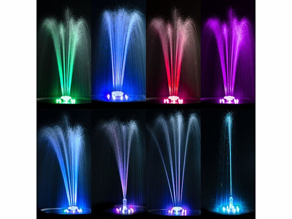 Donnez vie à votre étang ! Créez de superbes jets d'eau à la surface de votre plan d’eau avec la pompe de la fontaine à LED RVB de la marque Royal Gardineer !