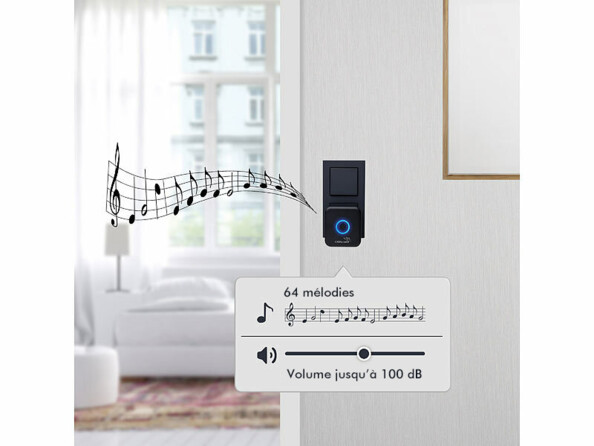 Choisissez ensuite une petite musique parmi 64 sonneries et mélodies au choix. Vous pouvez également régler le volume de la sonnerie jusqu'à 100 dB pour être certain de toujours être averti lorsque quelqu’un sonne à la porte. Ce réglage est notamment idéal pour les personnes ayant des problèmes d'audition.