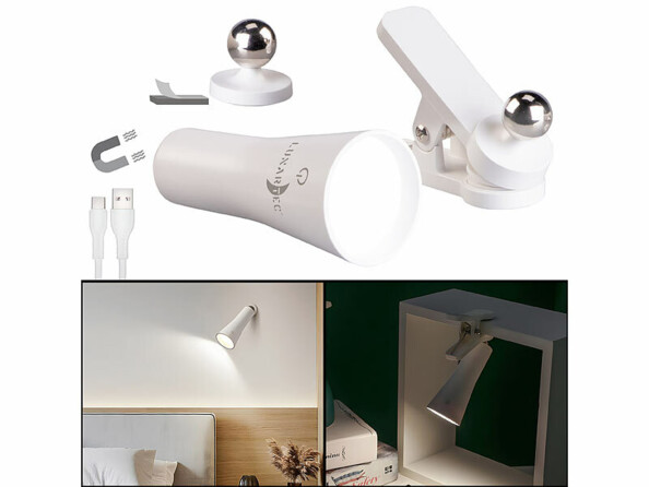 - Lampe rechargeable à pince coloris blanc de la maque Lunartec
