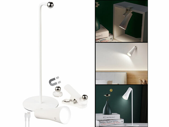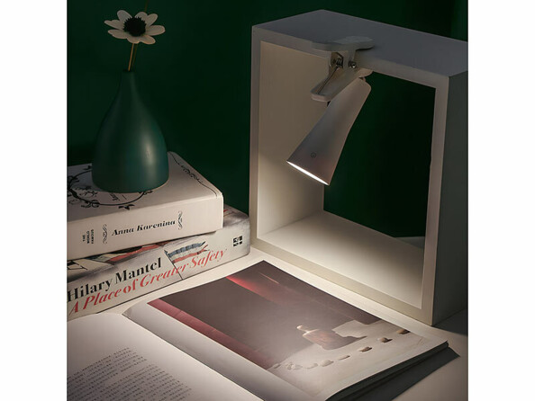Optez pour un éclairage polyvalent et design avec cette lampe de table rechargeable coloris blanc ! Celle-ci peut être fixée au mur, posée sur une table, pincée sur un bord de bureau ou encore utilisée comme lampe de poche. Et le plus beau, c'est que vous n'avez pas besoin de vous soucier des prises : la lampe fonctionne sur batterie ! Rechargez-la en USB, puis installez-la partout.