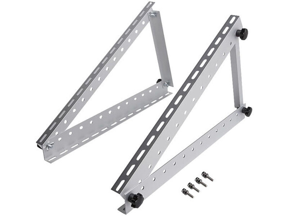 Plusieurs variantes de montage s’offrent à vous. Il vous est possible d’installer les supports réglables avec panneau solaire soit à l’horizontale, soit à la verticale. De plus, vous pouvez régler l’angle d’inclinaison des supports par paliers de 5° selon vos besoins.