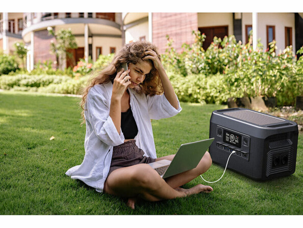 Lorsque la batterie est branchée à l’alimentation secteur et qu’un appareil mobile y est raccordé, celle-ci alimente l’appareil en question tout en chargeant. En cas de panne de courant, la fonction onduleur de la batterie prend le relais du secteur pour poursuivre l'alimentation de l’appareil branché !