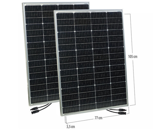 - 2 panneaux solaires monocristallins mobiles 150 W avec connecteur compatible MC4 de la marque Revolt