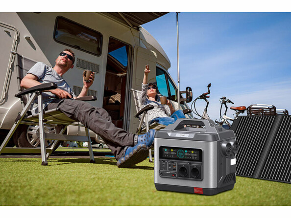 La batterie d’appoint est à plat ? Les possibilités pour la recharger sont diverses et variées. Vous pouvez, au choix, charger la batterie à la maison avec un chargeur secteur 230 V, la charger en route sur l'allume-cigare 12 V de votre voiture ou utiliser le générateur solaire intégré pour la recharger par énergie solaire 100 % écologique et renouvelable. Tout ce dont vous avez besoin, c'est des deux panneaux solaires mobiles 150 W et du câble en Y compatible MC4 vers Anderson fournis en accessoires.