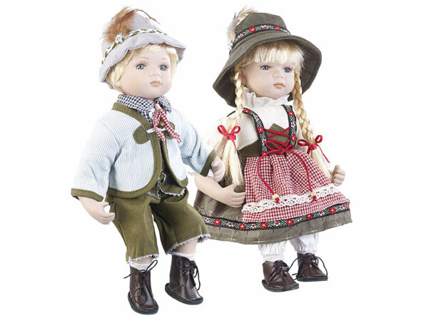 - Pack de 2 poupées en porcelaine avec habits bavarois Anna et Anton