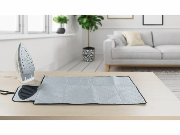 Idéale en déplacement, la couverture de repassage compacte ne pèse pas lourd.