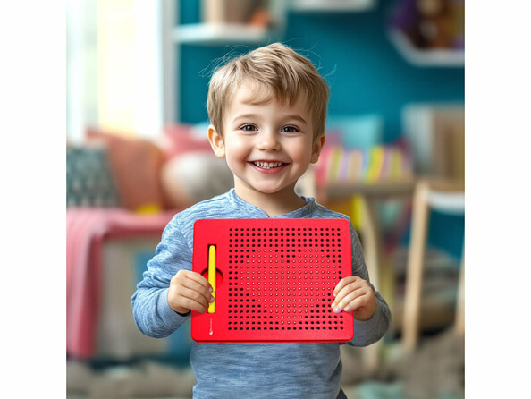 En outre, les œuvres d'art apparaissent comme par magie sur la surface magnétique, tandis que le stylo aimanté glisse en douceur sur la tablette pour tracer des lignes nettes. Grâce au mécanisme d'effacement pratique, vous n'avez pas besoin de gomme : le dessin s'efface d'un seul geste ! Ne reste qu'à recommencer, pour des heures d'amusement.
