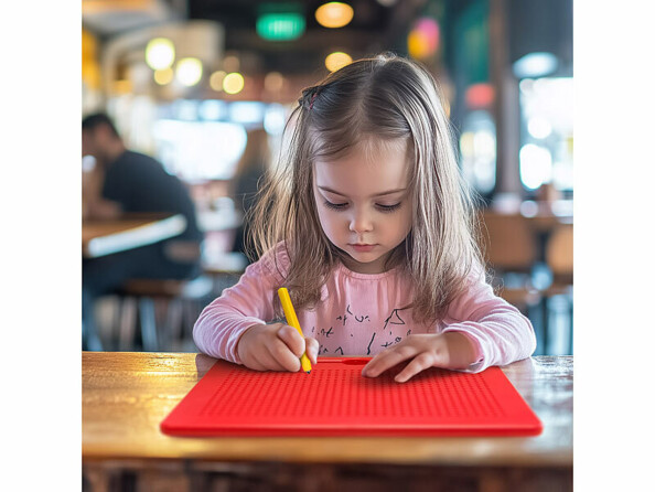 Avec la tablette de dessin magnétique de voyage 17,5 x 21,5 cm coloris rouge de la marque Playtastic, laissez libre cours à votre créativité, où que vous soyez ! Dessinez, écrivez, gribouillez, le tout sans papier ni crayon. C'est idéal pour occuper vos enfants en voiture, en train, au restaurant, etc.