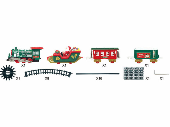 Conception méticuleuse : la petite locomotive verte et rouge tire trois wagons finement décorés, dont un transportant le Père Noël en personne. Le train émet même des effets sonores et lumineux, pour une expérience magique qui ravira petits et grands.