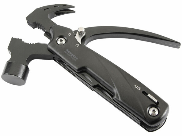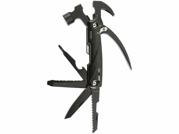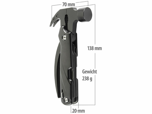 - Outil compact et polyvalent : avec couteau, marteau à panne fendue, pince plate, décapsuleur, pince multiprise, coupe-fil/câble, tête de marteau, lame de scie, lime à ongles, tournevis plat, tournevis cruciforme et écailleur à poisson