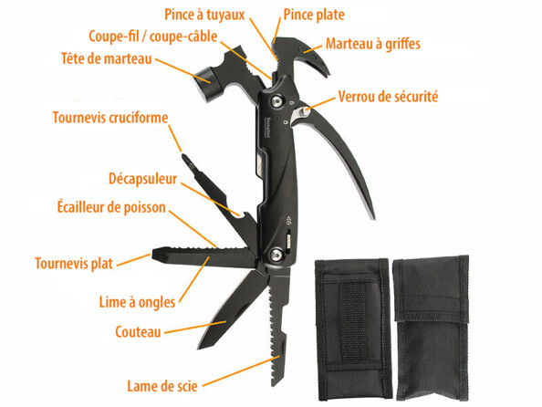 - Outil multifonction 12 en 1 avec housse en nylon et mode d’emploi en français