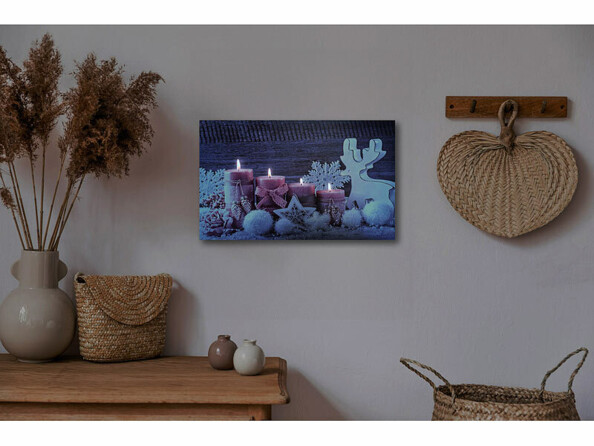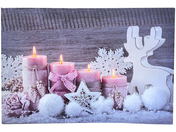 - Tableau lumineux effet flamme "Bougies, rose et renne" de la marque Infactory