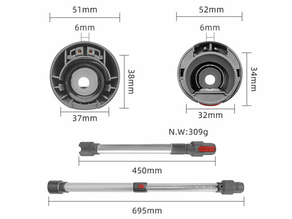 - Tube télescopique compatible pour aspirateur Dyson de la marque Sichler Haushaltsgeräte