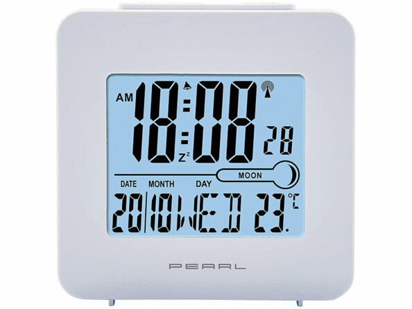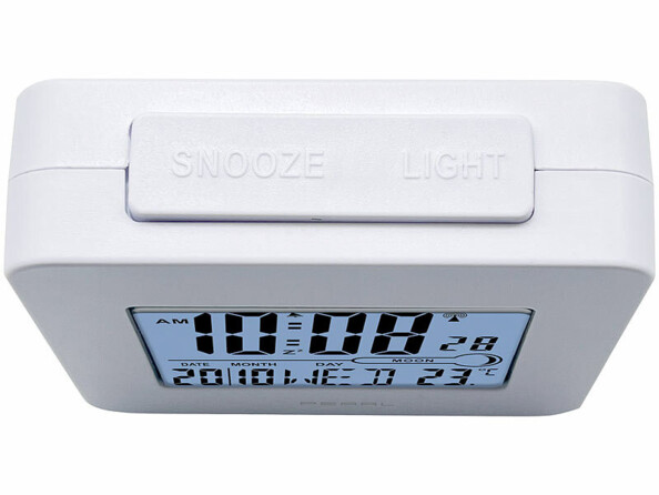 Commencez la journée du bon pied avec ce réveil qui affiche également la température ! Ce réveil radio-piloté vous affiche la date, le jour de la semaine et la température sur son grand écran. Vous pouvez même connaître les phases du cycle lunaire !