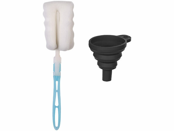- 24 pots, éponge, 240 étiquettes, entonnoir, stylo blanc, 48 saupoudreurs, mode d'emploi en français