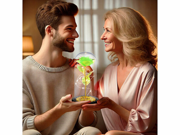- Rose sous cloche de verre, piles, emballage cadeau, mode d'emploi en français