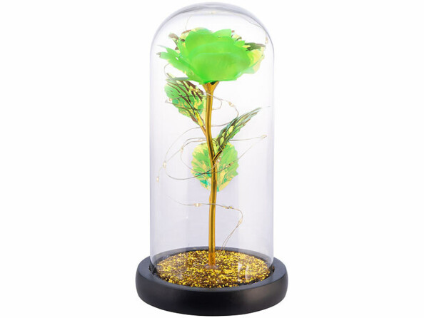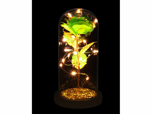 - Rose éternelle LED sous cloche coloris or de la marque Lunartec