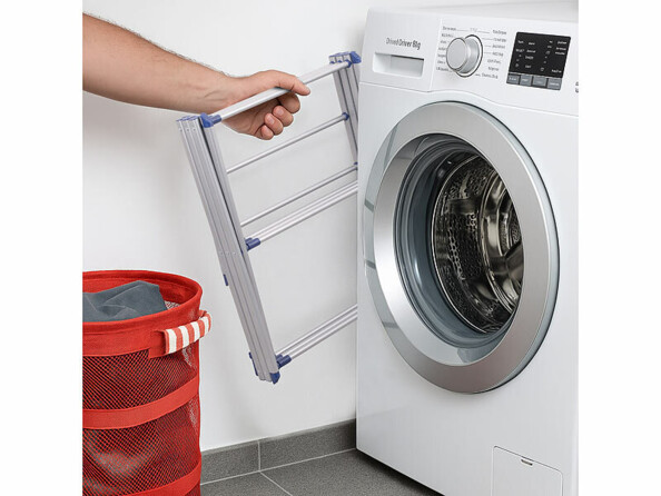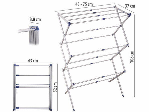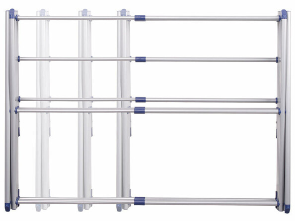 Ce séchoir très compact une fois replié, offre jusqu'à 8 m linéaires de surface d'étendage