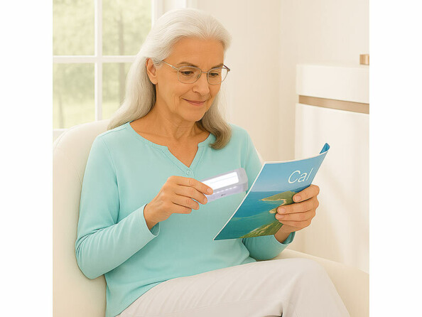La grande lentille assure un large champ de vision, sans que vous ayez besoin de la réajuster. Utilisez cette loupe à la maison, en vacances ou même lors de visites administratives : compacte et ergonomique, l'instrument vous accompagne dans les situations quotidiennes.