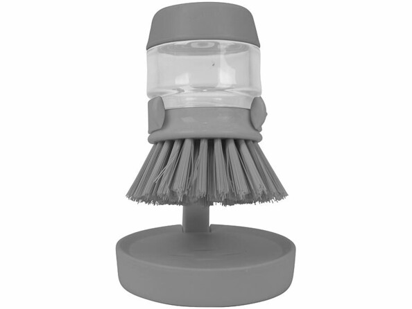 Simple et efficace, cette brosse à vaisselle avec distributeur de liquide vaisselle et support vous permet de récurer parfaitement vos assiettes ! Elle délivre un dosage précis de détergent lorsque vous appuyez sur le flacon. Vous nettoyez ainsi la vaisselle, les casseroles et les poêles en un tournemain ! Les poils fins nettoient sans rayer les matériaux délicats comme le verre ou l'acier inoxydable. Votre vaisselle reste ainsi toujours impeccable.