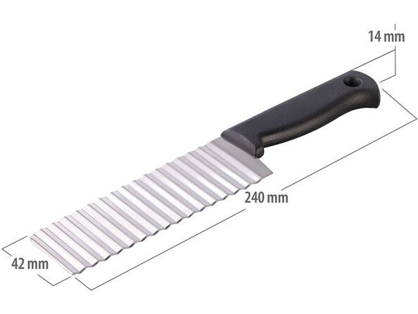 Vos petits plats auront fière allure grâce à ce couteau ondulé en acier inoxydable ! Découpez les fruits et légumes selon une belle forme de vague. C'est pratique pour les salades, les accompagnements et les garnitures travaillées.