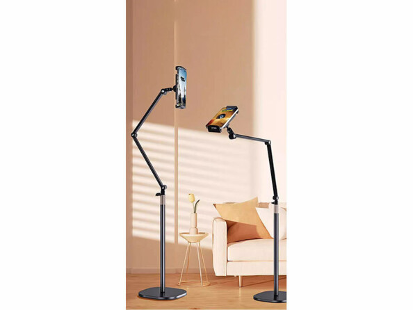 - Support au sol design pour smartphones et tablettes de 5" à 12"