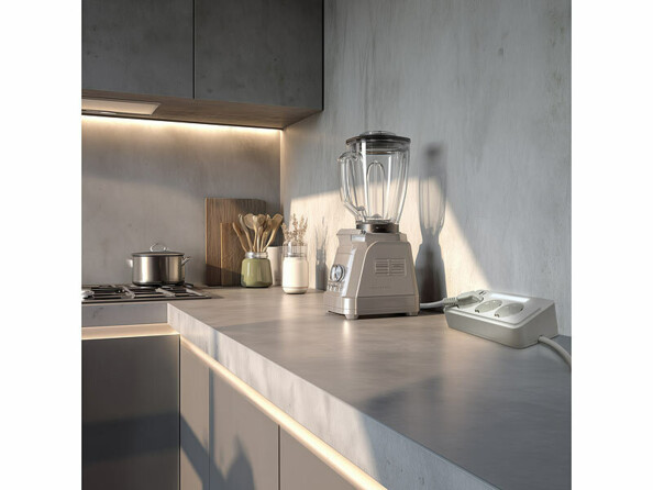 La veilleuse intégrée fournit un éclairage doux dans les pièces sombres. Elle est idéale comme source de lumière discrète pour le couloir ou la chambre. Grâce à elle, vous trouvez ainsi le bon connecteur sans vous perdre dans l'obscurité.