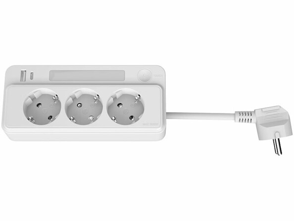 - 3 prises secteur, port USB-A et port USB-C