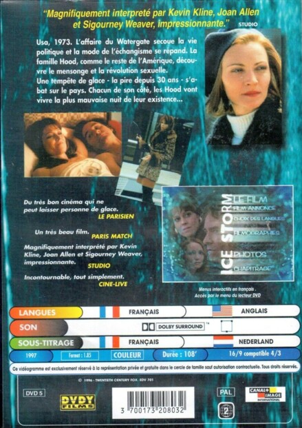 Film américain (1997), Comédie dramatiqueDurée : 1h 52min Réalisateur : Ang Lee Acteurs : Ben Hood : Kevin Kline, Elena Hood : Joan Allen, George Clair : Henry CzernyA travers les mésaventures amoureuses de la famille Hood la nuit du Thanksgiving, dans une petite ville du Connecticut subissant une tempête de neige, peinture caustique et lucide des années 1970, témoins du Watergate et du libre-échangisme.