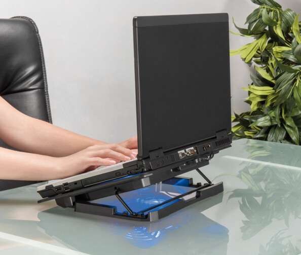 Le petit plus : les longues heures passées sur les jeux ou sur votre navigateur sont nimbées d'une agréable lueur bleutée. Car le support offre un éclairage LED qui apporte une note stylée à votre espace de travail. Il s'adapte à vos besoins : l'inclinaison du support peut être réglée sur 4 niveaux, ce qui vous permet de placer votre ordinateur de la manière la plus ergonomique possible.