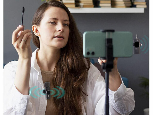 Il suffit de fixer le microphone par clip à l'un de vos vêtements et de brancher le récepteur sans fil au port USB-C de votre appareil mobile. Placez ensuite l'appareil mobile au bon endroit et le tour est joué. Grâce à la transmission par ondes radio, vous pouvez vous déplacer jusqu'à 10 mètres autour du récepteur, et ce sans câble !