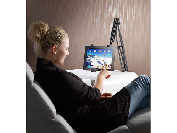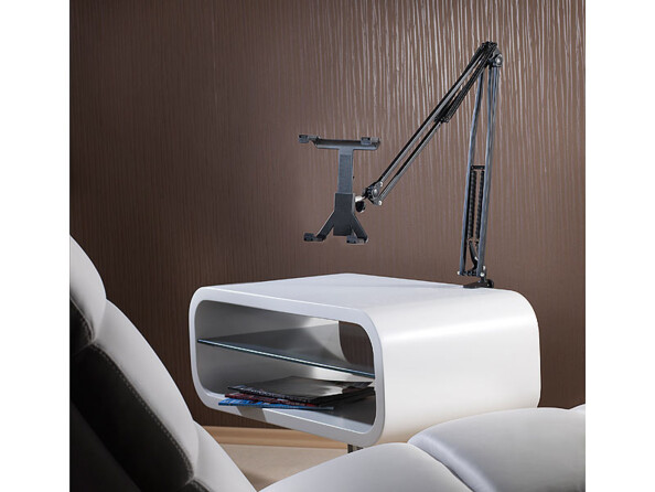 Ce support vous offre une stabilité optimale grâce à des ressorts et pinces très robustes pour pouvoir orienter votre tablette dans toutes les directions. Fixez-le par exemple à la table lors d’une réunion pour avoir les informations importantes toujours sous les yeux.