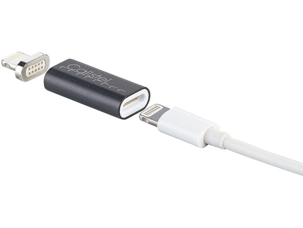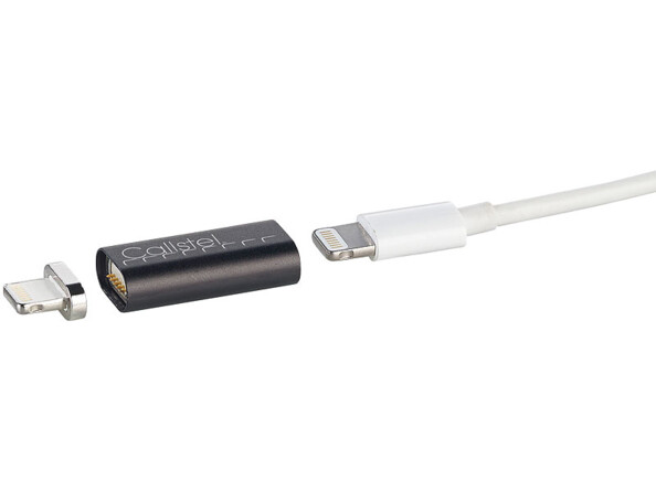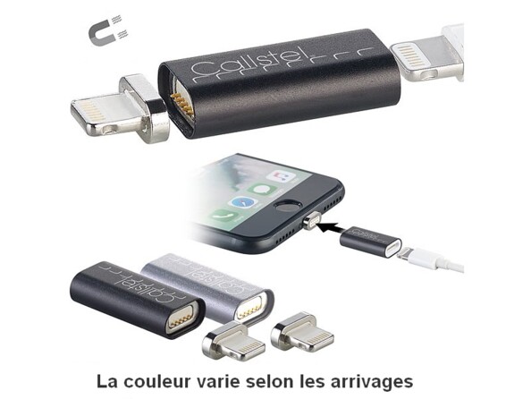 - Adaptateur de chargement compatible Lightning à connecteur magnétique, par Callstel (ne gère pas le transfert de donnée)