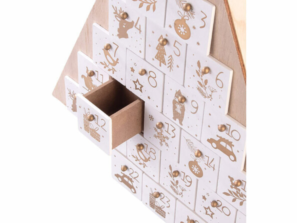 Chacun des 24 petits tiroirs cache un espace pour vos surprises. Que ce soit des bonbons, des petits jouets, des cosmétiques ou des messages personnels, vous pouvez remplir chaque tiroir individuellement. Et comme vous pouvez les disposer librement, le suspense reste entier chaque année.