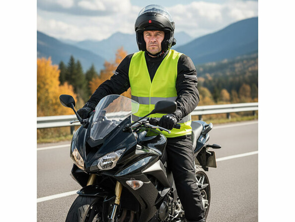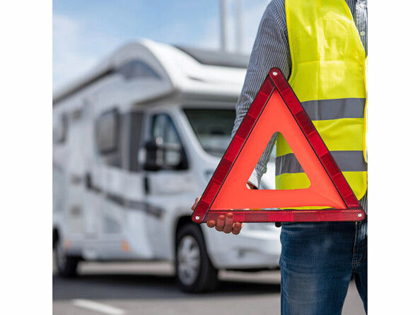 Le gilet réfléchissant est conforme à la norme EN ISO 20471 : il vous rend parfaitement visible en cas de panne ou d'accident, même dans l'obscurité ou par mauvais temps. Le triangle certifié E-Mark, quant à lui, signale la zone de danger aux autres usagers.