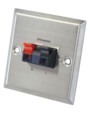 Ce bornier encastrable en acier inoxydable vous permettra de relier 1 enceinte ou d'effectuer un montage en bi-câblage.