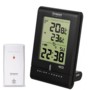Outre l'heure sur 24h, l'alarme et le jour, cette horloge vous renseigne également sur la température : intérieure, mais également extérieure grâce à une sonde à placer dehors.