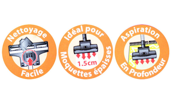 Pour nettoyer de fond-en-comble vos surfaces velues (seulement au sol, hein...), la TurboBrosse de Codiac est particulièrement efficace : cette tête d'aspirateur intègre une brosse rotative, qui déloge toute saleté jusqu'à 15 mm de profondeur !