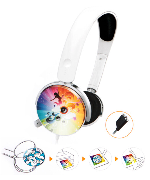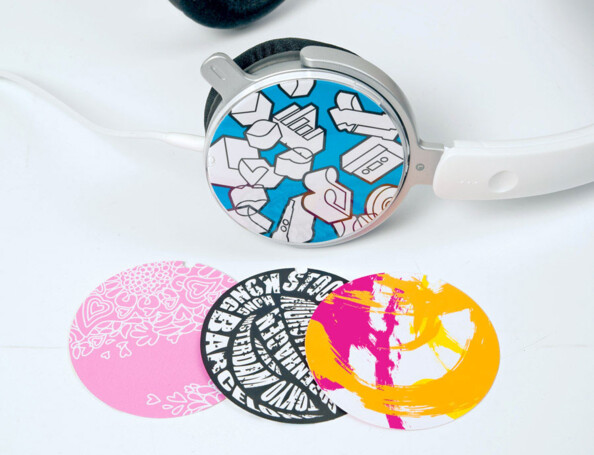 Personnalisez votre casque en utilisant vos propres créations ou les coques avec les motifs inclus.