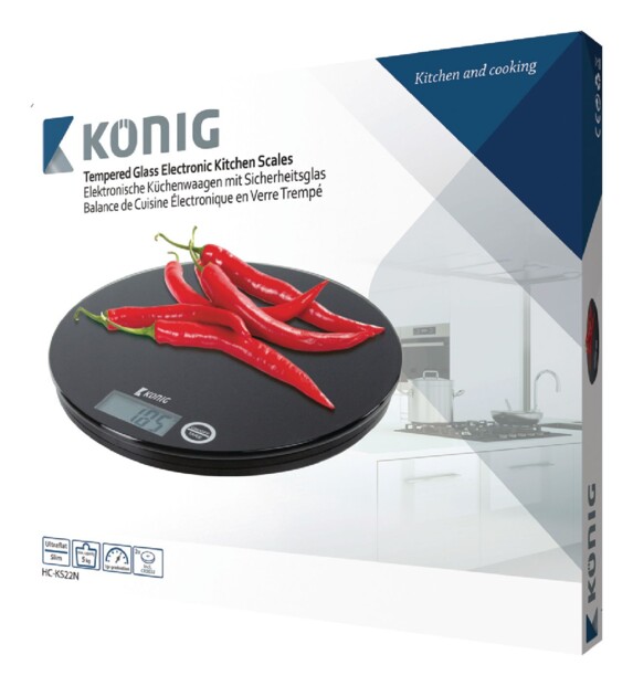 C'est le cas avec le verre trempé de cette balance de cuisine ronde et élégante König HC-K22N, qui supportera même le poids vos saladiers et casseroles remplies à ras-bord ! Le verre permet également l'utilisation de commandes tactiles et un nettoyage aussi facile que rapide.