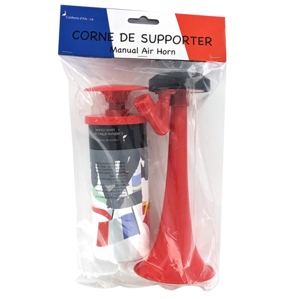 Cette corne dispose d'une pompe manuelle afin de ne jamais tomber en rade de gaz en plein match et risquer de ne plus vous faire entendre !