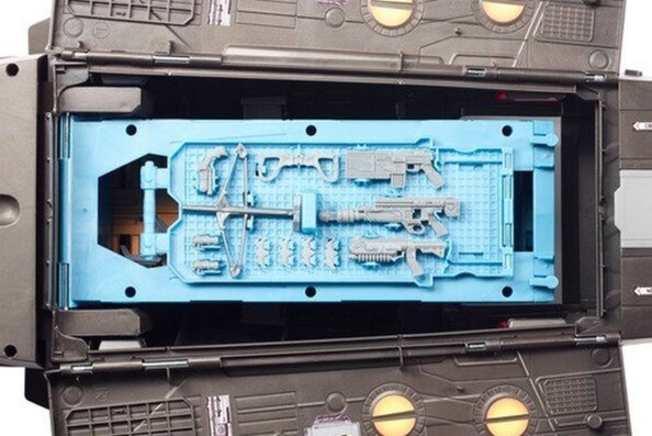 En vol, il peut parfaitement se défendre avec ses canons qui se déploient sur le haut de la coque. Mais une fois au sol, il devient un véritable terrain de jeu pour les super-héros : rampe d'évacuation, tyrolienne, poste de renseignement, réserve d'armes et d'armures... On espère pour Steppenwolf qu'il est bien préparé à recevoir la puissance de la Justice League !