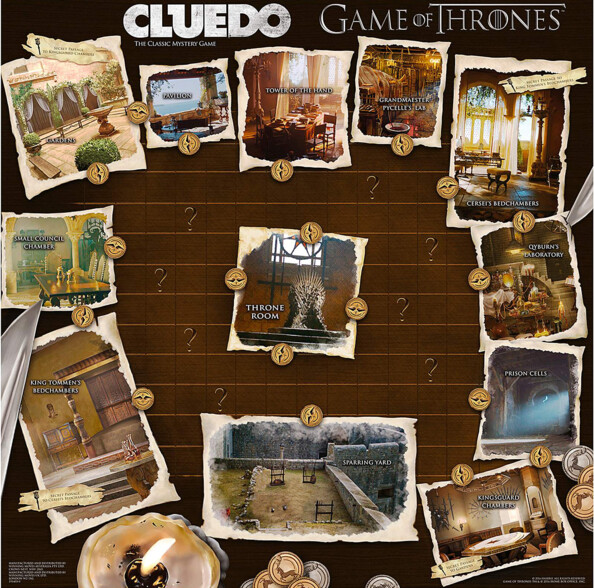 Assassinats, empoisonnements... menez votre enquête comme dans le célèbre manoir de l'édition classique de Cluedo mais dans un château de Westeros. Douze des pires comploteurs des 7 Couronnes, dont Margaery Tyrell, Petyr Baelish ou Cercei Lannister, ont commis un affreux meurtre avec 1 des 6 armes disponibles. Fouinez, creusez les indices et découvrez qui est le pire des 12 comploteurs et a voulu devenir le monarque suprême...
